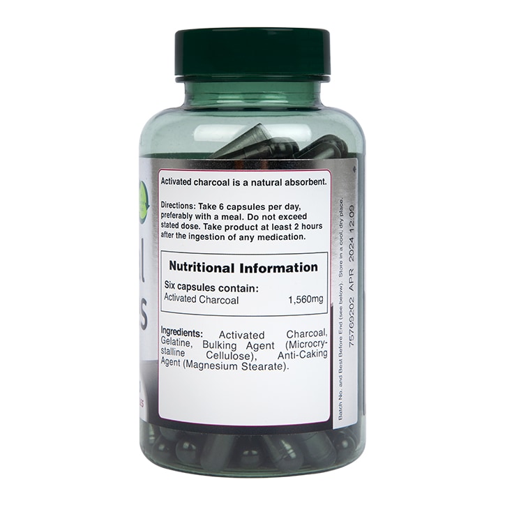 Opdag Holland & Barrett Activated Charcoal, et praktisk supplement fremstillet i Storbritannien. hver kapsel indeholder 1560 mg aktivt kul af høj kvalitet.