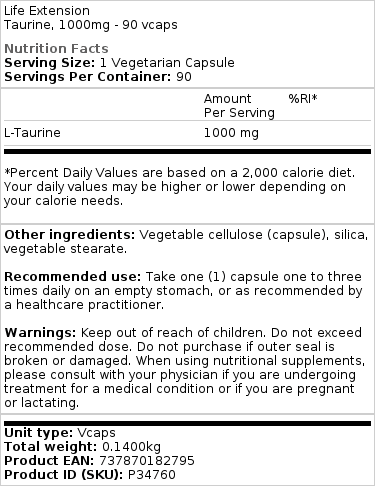 Life Extension – Taurin, 1000mg – 90 vcaps