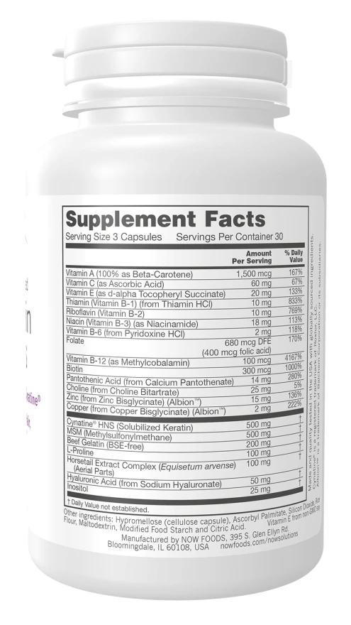 NOW Foods Hair, Skin & Nails kommer i en praktisk kapsel-form, der gør det nemt at indtage som del af din daglige rutine. Et naturligt valg for dig der værdsætter høj kvalitet uden kunstige tilsætningsstoffer eller allergener.
