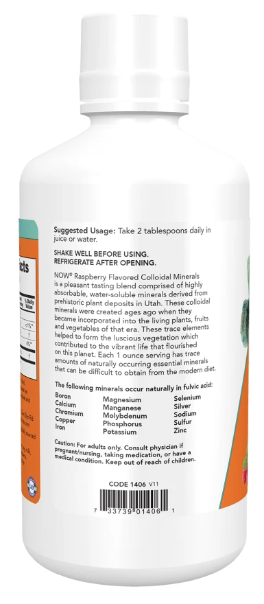 NOW Foods – Kolloidale mineraler, hindbær – 946 ml
