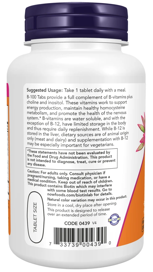 NOW Foods – Vitamin B-100 Sustained Release – 100 tabs